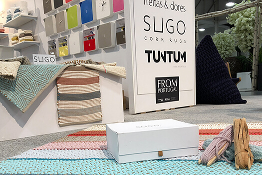 "SUGO CORK RUGS is a complete and patent-pending new brand of hand-woven rugs made with cork with a contemporary, sustainable and innovative design that brings the traditional weaving art techniques back."